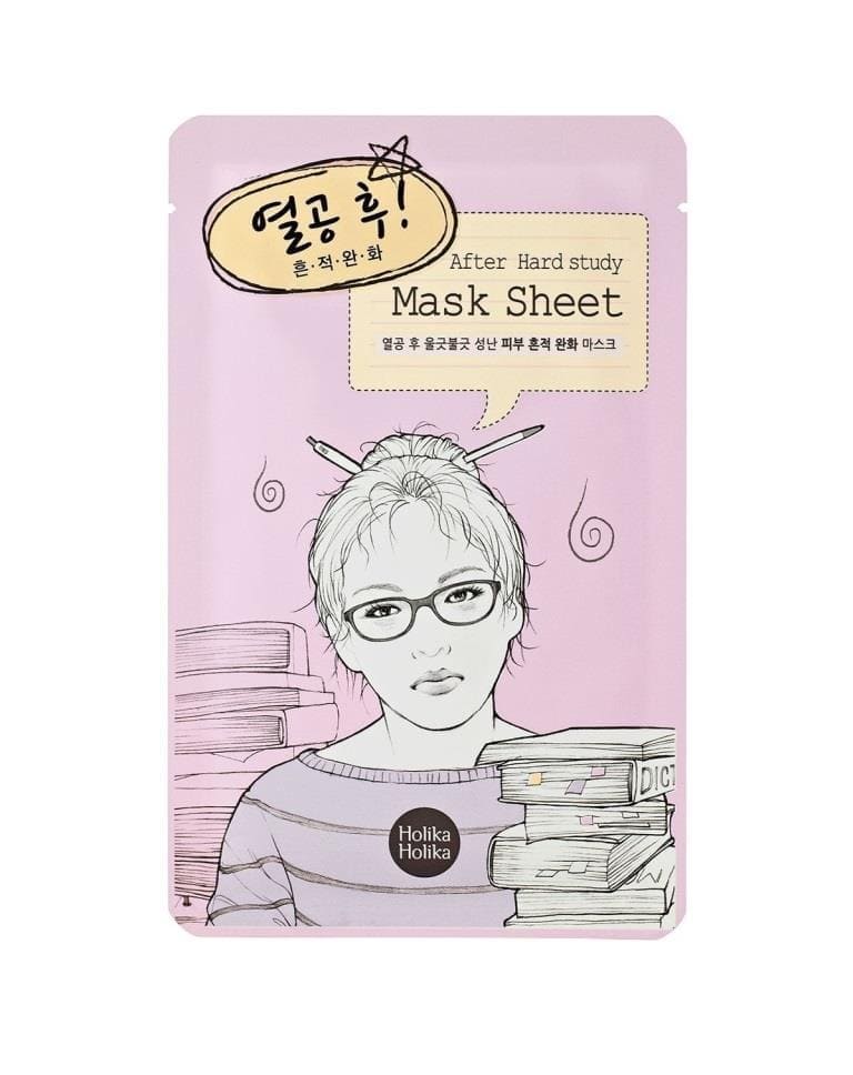 After Hard Study Mask Sheet is a skin clearing sheet mask. It contains ingredients like tea tree, green tea, calendula and witch hazel. These ingredients help keep the skin clean and clear. This mask will help soothe your skin as well.