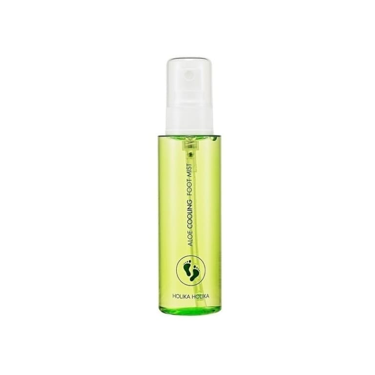 Cooling mist for the feet contains aloe vera, menthol, peppermint extracts and zinc ricinoleate.
